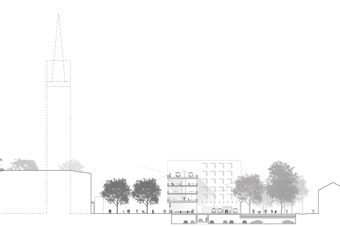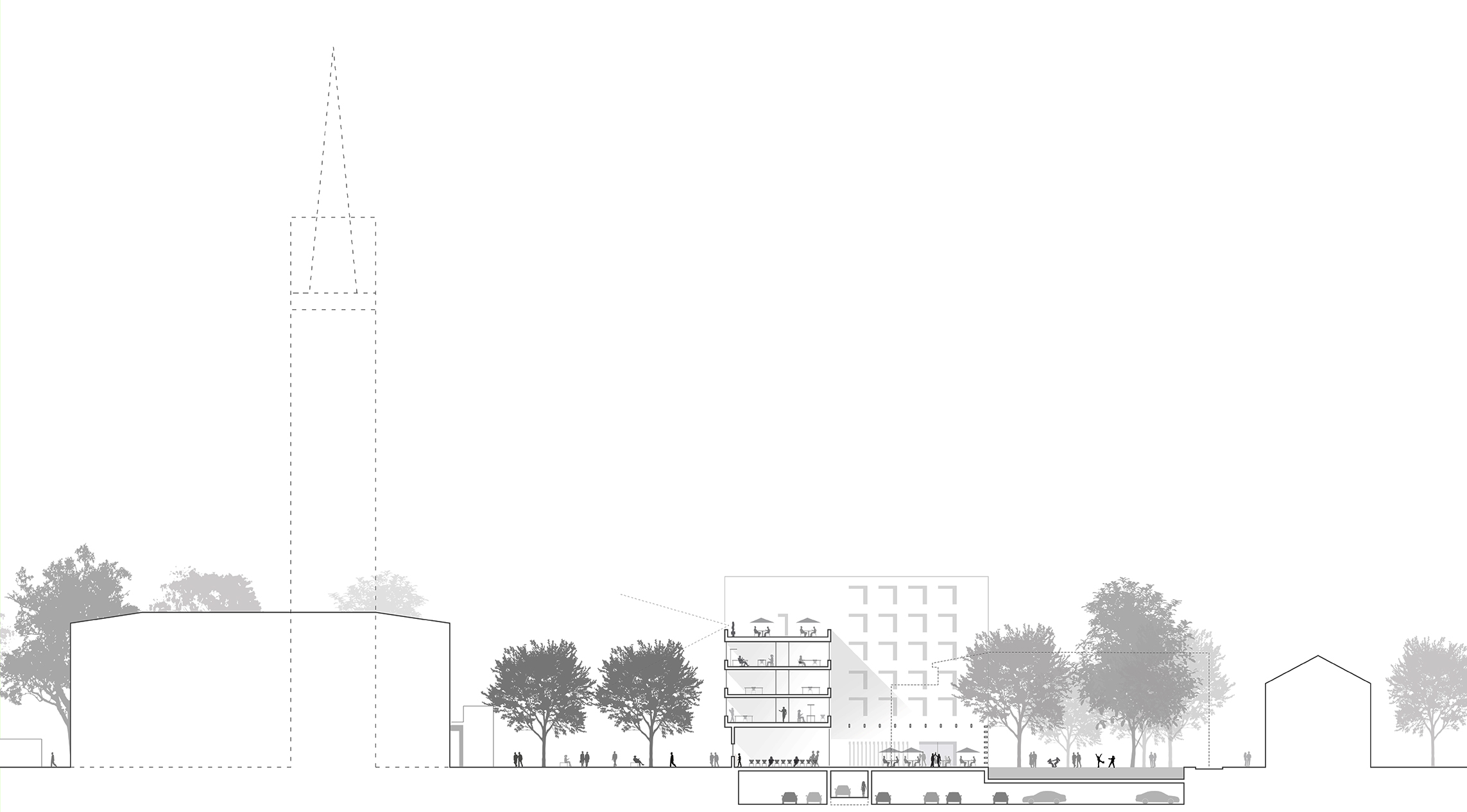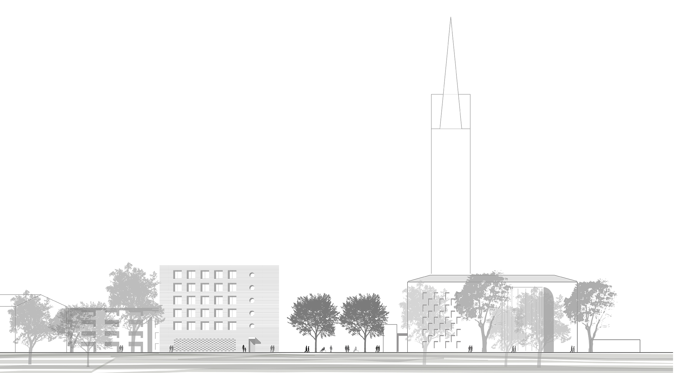 Die Evangelische Kirche in Pforzheim plant die bestehenden, dezentralen Gemeindehäuser durch ein Innenstadtzentrum zu ersetzen, das unterschiedlichste Nutzungen zusammenführt. Das Planungsgebiet liegt in der Pforzheimer Innenstadt gegenüber der Evangelischen Stadtkirche.