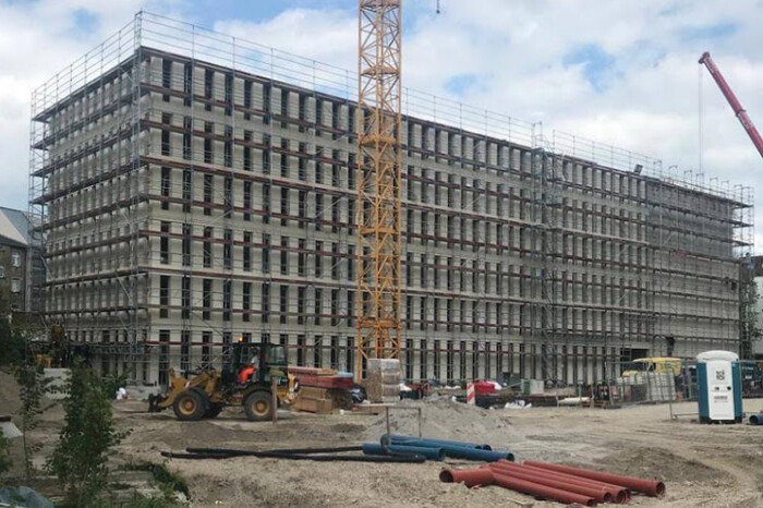 Ziel ist es, durch die konstruktive und plastische Ausbildung des Baukörpers einen in sich ruhenden Stadtbaustein zu entwickeln, der den städtischen Räumen folgt und einen klaren, baulichen Abschluss des Blockrandes bildet. Das ruhige Sichtbetonfassadenraster lebt durch den direkten Einsatz des Materials, die Rhythmisierung und die subtile, plastische Profilierung und Einpassung der Glaselemente. Jedes Fenster erhält einen Lüftungsflügel und somit die individuelle Möglichkeit der Luftzufuhr. Das Gebäudekonzept birgt Freiräume dort, wo man sie nicht vermuten würde. Durch die geschickte Verteilung der Funktionen entstehen offene Innenbereiche. Vom klassischen Einzelbüro über Kombizonen bis hin zu Großraumbereichen ist alles realisierbar.