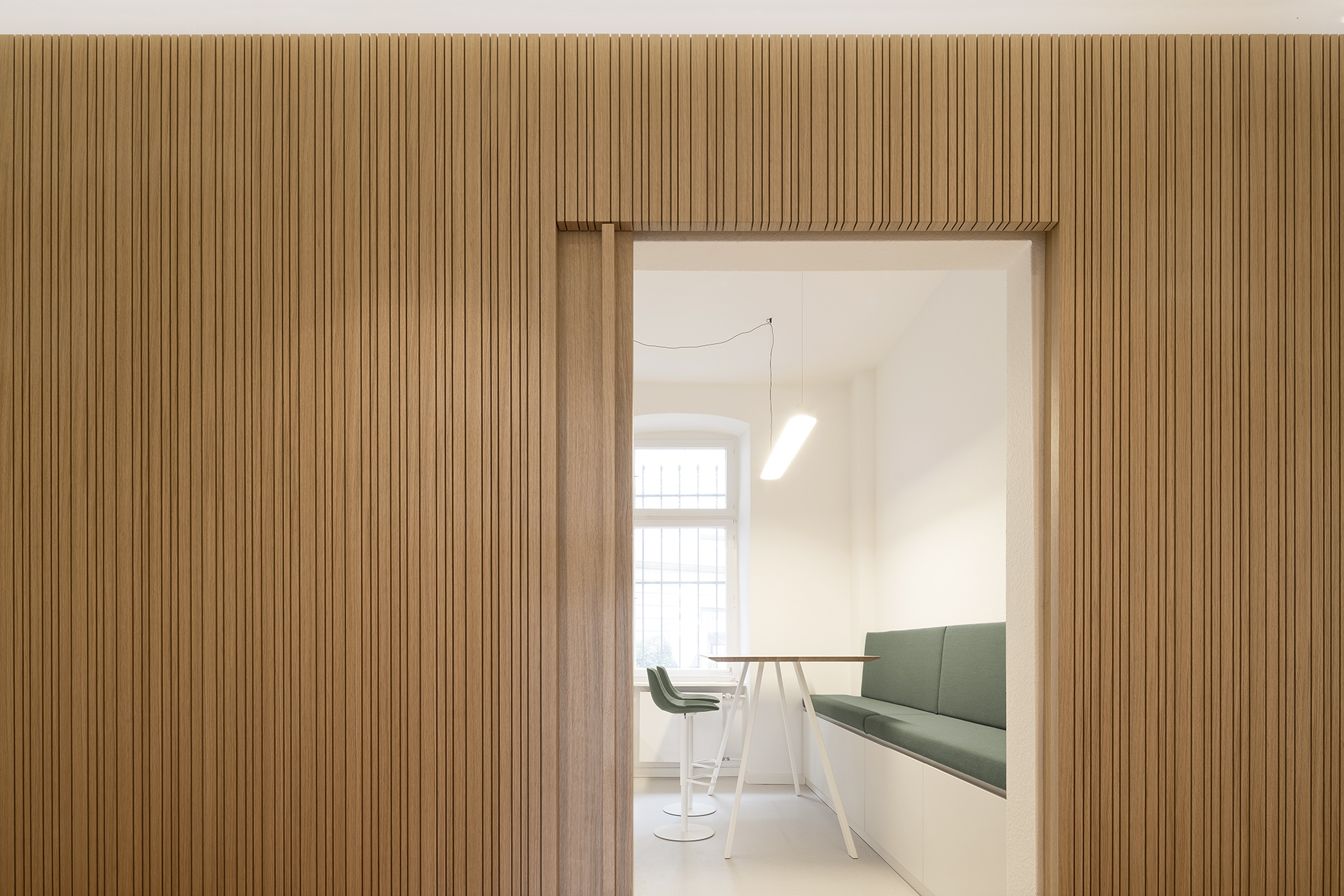 Für den neuen Standort der Fürstlich Castell’schen Bank im oberfränkischen Bamberg wurden die erdgeschossigen Räumlichkeiten eines denkmalgeschützten Wohn- und Geschäftshauses in zentraler Lage am Ufer der Regnitz umgebaut und modernisiert.