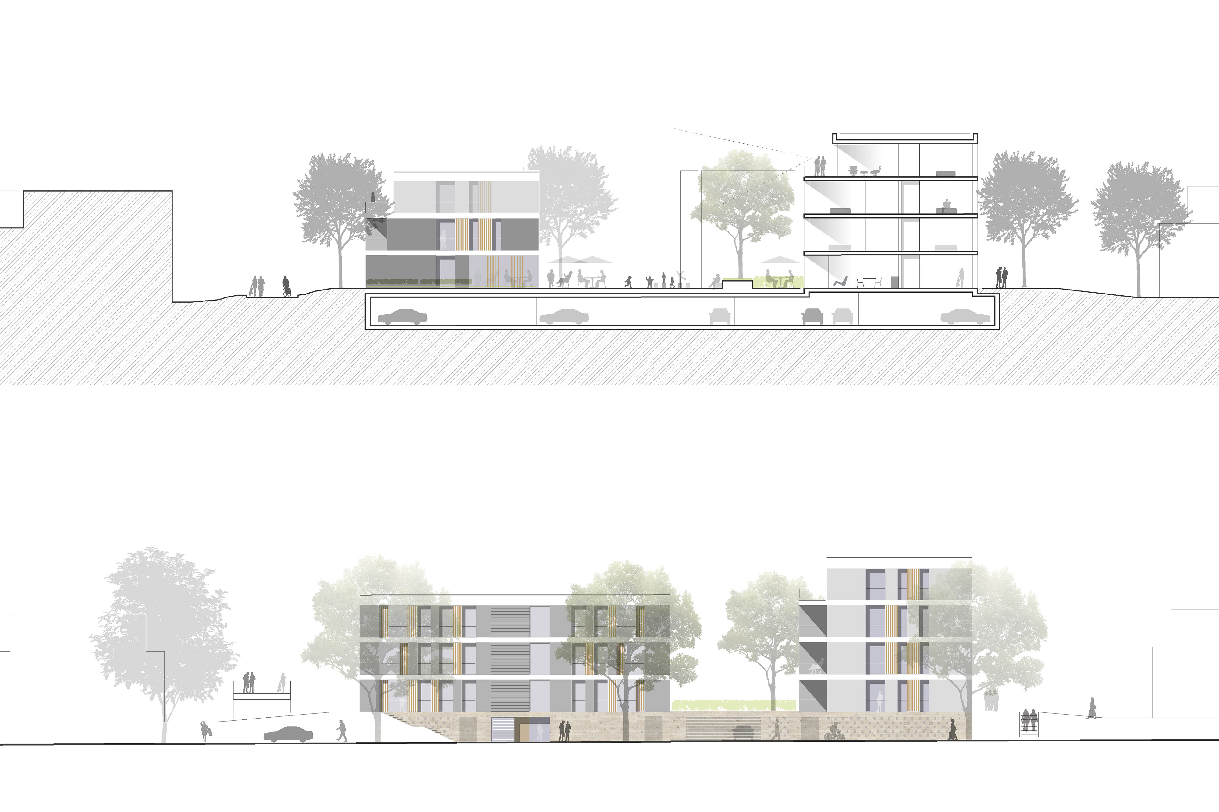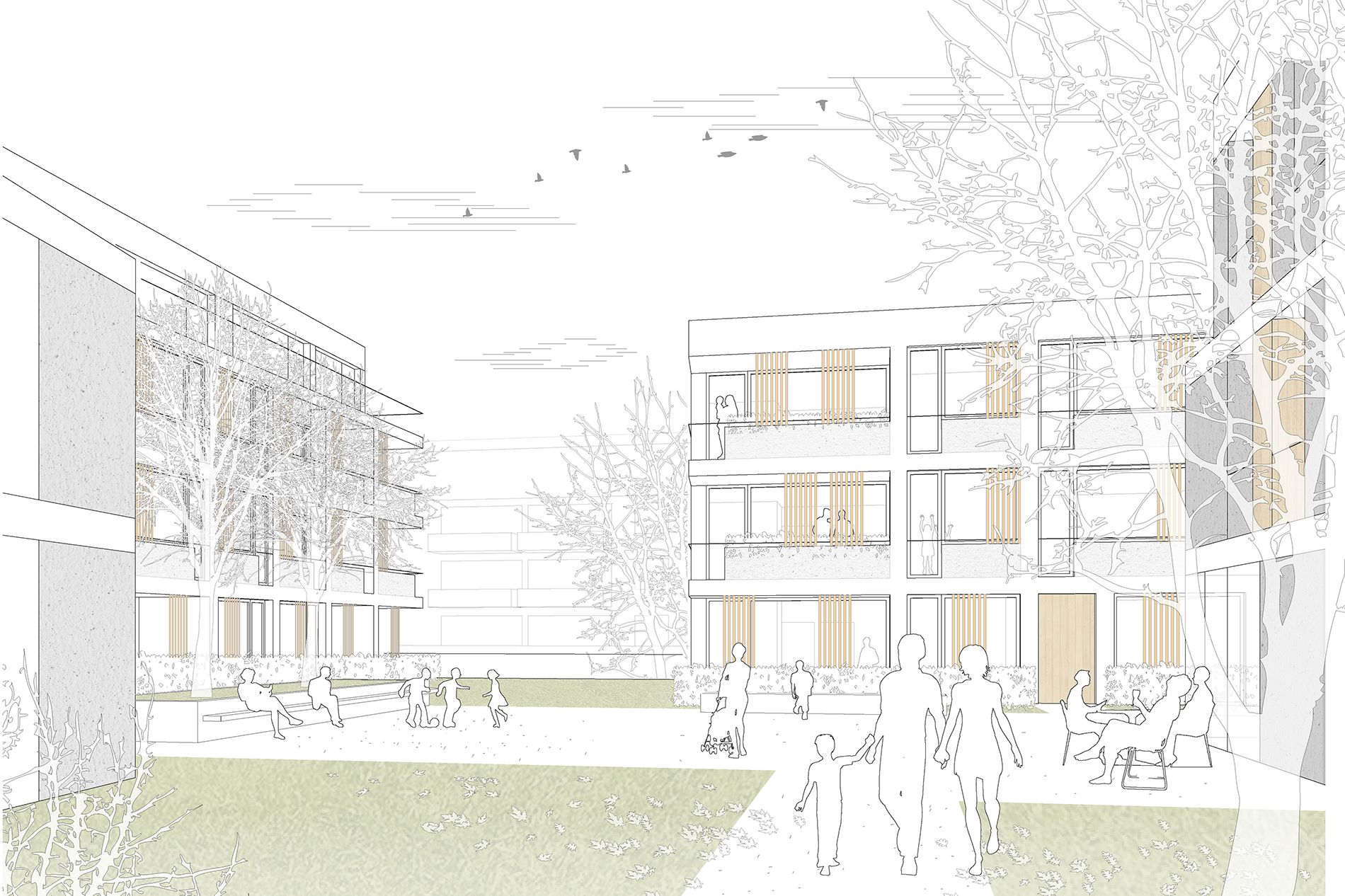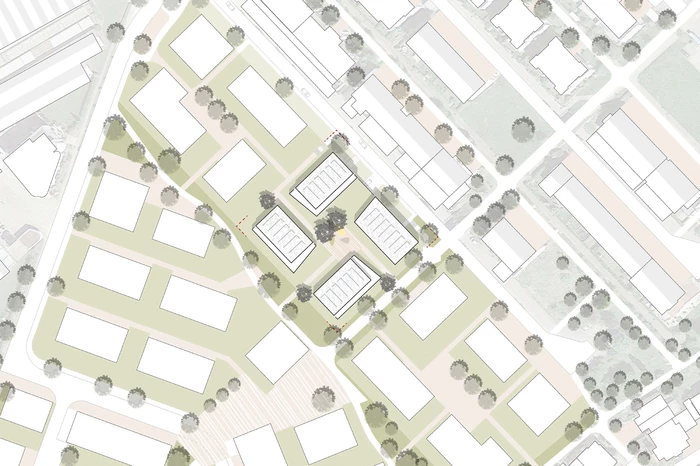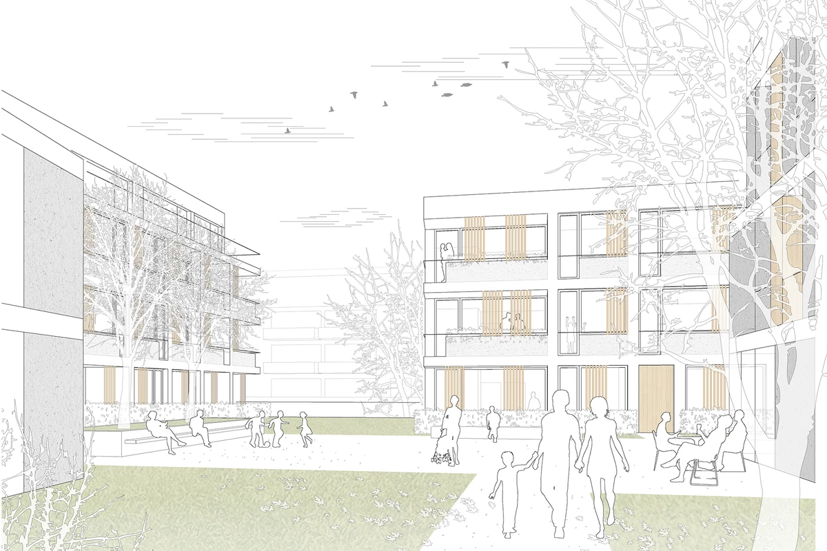 Im Hinblick auf die Gebäudetypologie ist ein Wohnungsmix aus insgesamt 38 Einheiten vorgesehen, der von der 2- bis zur 4-Zimmer-Wohnung reicht, sowohl geförderten als auch frei finanzierten Wohnraum für unterschiedlichste Lebensphasen anbietet und neben kleineren Wohnungen für 1- und 2-Personenhaushalte auch familiengerechtes sowie altersgerechtes Wohnen umfasst.