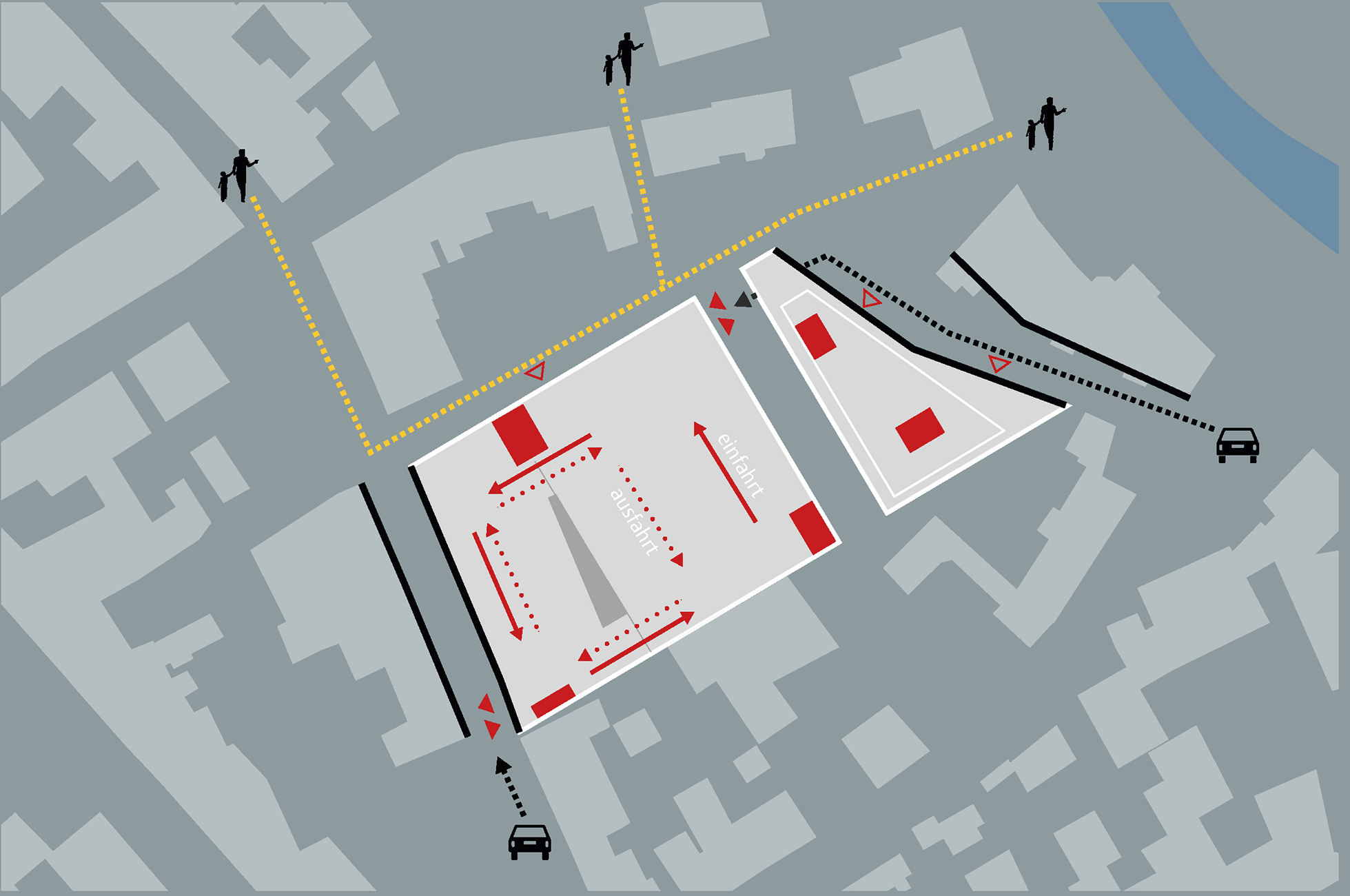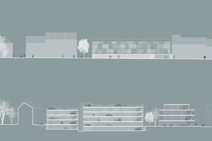 Das neue Parkhaus greift im Entenpfuhl die Struktur der Blockrandbebauung auf und schafft durch eine klare Raumkante einen definierten Straßenraum. Die Lage im Stadtgefüge sorgt für eine eindeutige Adressbildung, gute Wahrnehmbarkeit und leichte Auffindbarkeit.