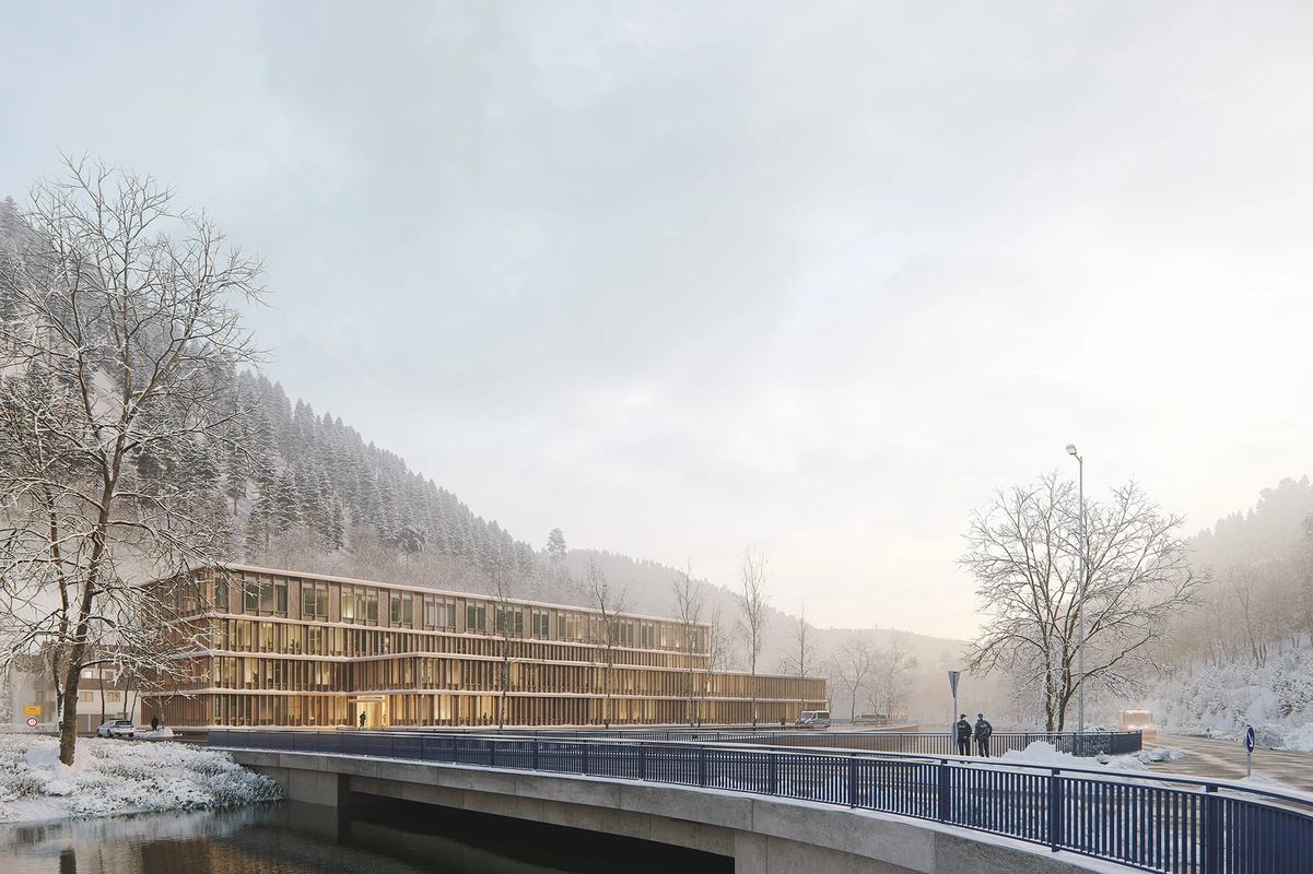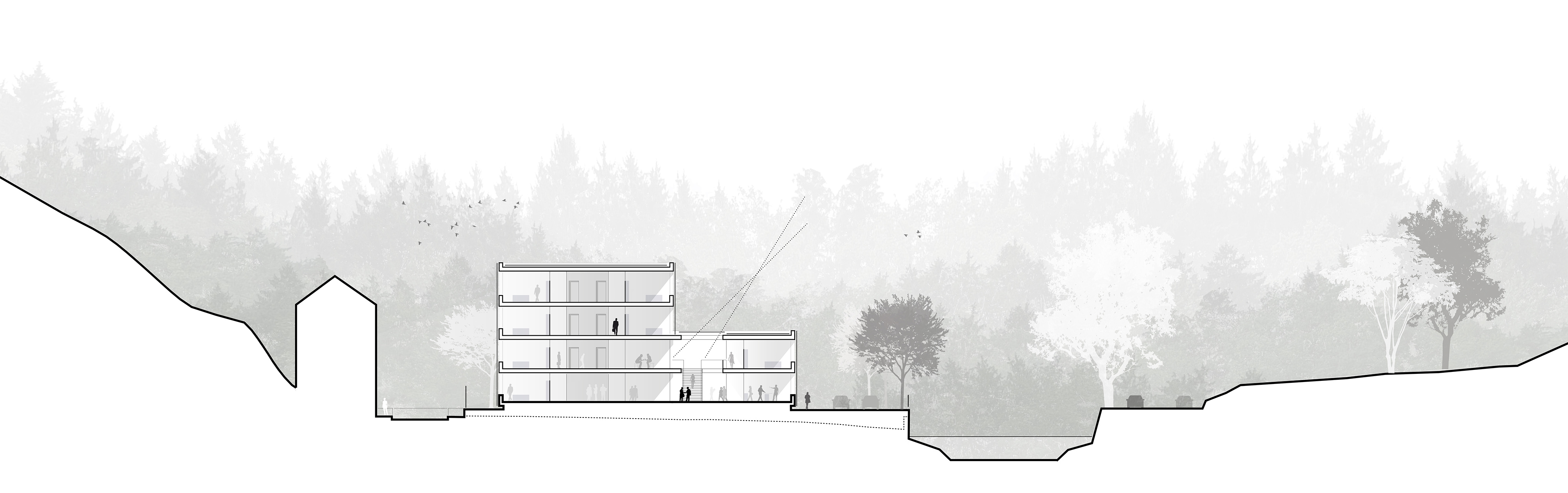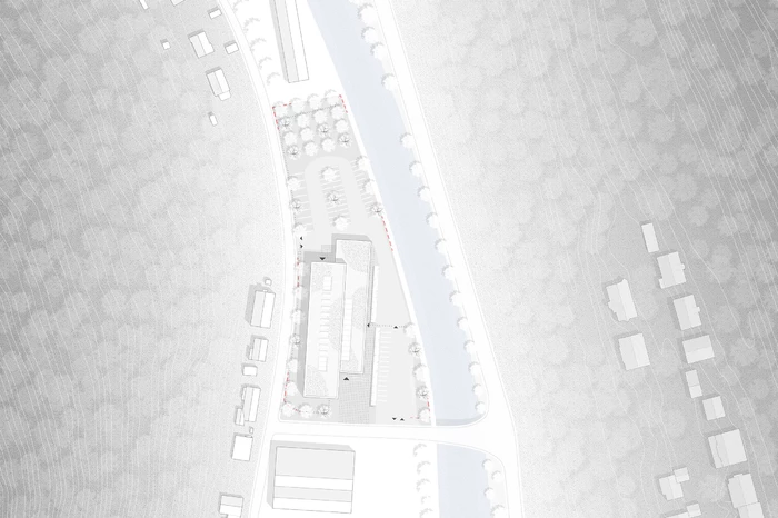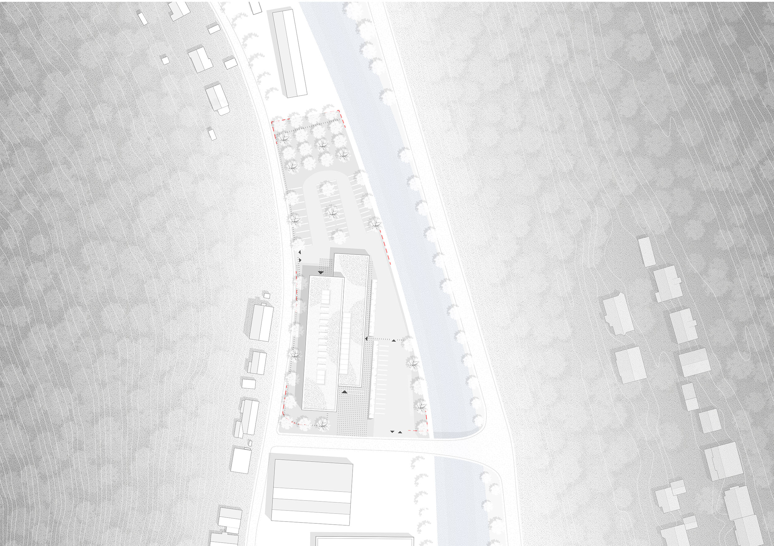 Das direkt an die Nagold angrenzende, keilförmige Grundstück liegt am nördlichen Stadtausgang von Calw und veranschaulicht die für die Stadt charakteristische Enge des Nagold-Tals. Die Berghänge des Nordschwarzwaldes bilden im Westen und Osten eine eindrückliche Kulisse.