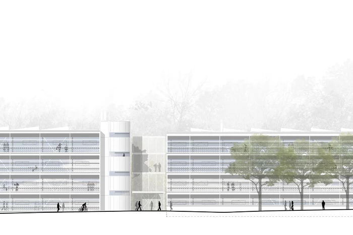 Das Wettbewerbsgebiet befindet sich in prominenter Lage am westlichen Stadteingang von Tübingen und bildet den Auftakt zum neu entstehenden Gewerbegebiet. Dementsprechend kommt dem neuen Gebäudekomplex eine besondere, stadtbildprägende Bedeutung zu. Entlang der Herrenberger Straße wird ein gegliederter Baukörper vorgeschlagen, der durch präzise Raumkanten den Straßenraum klar definiert und sich mit seiner Geschossigkeit maßstäblich in den städtebaulichen Kontext einfügt.