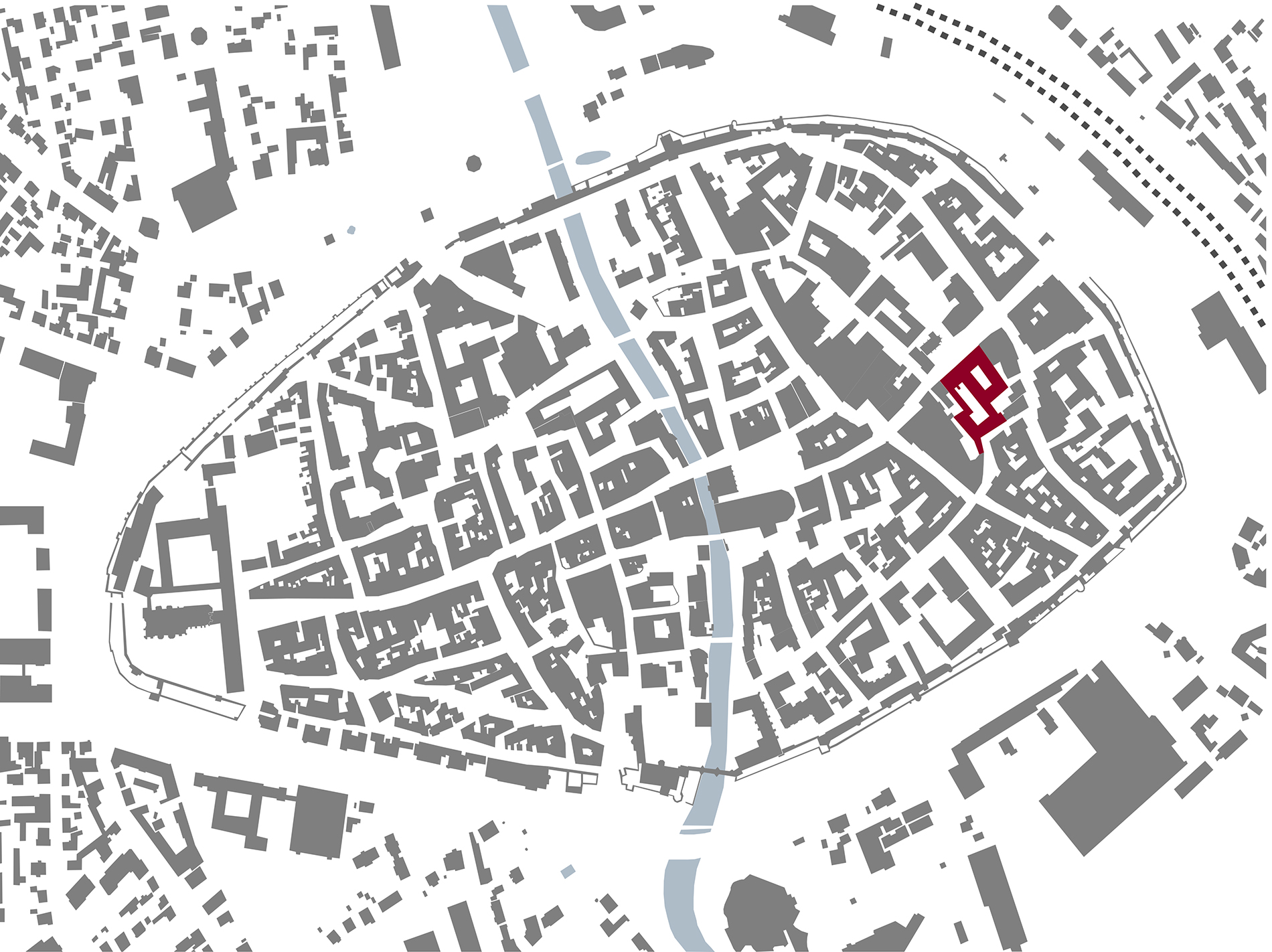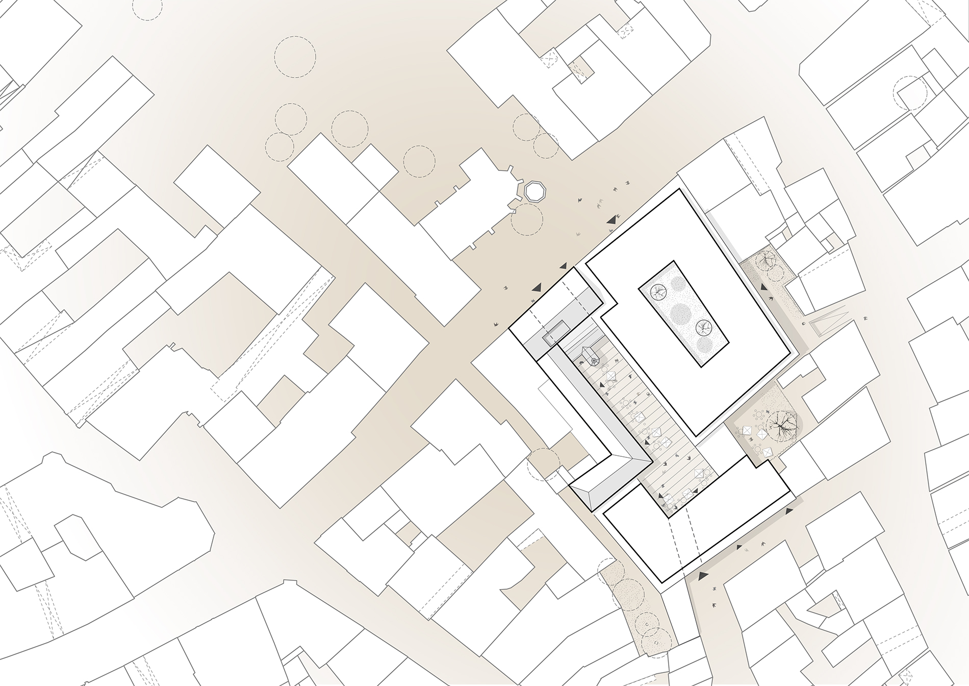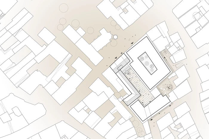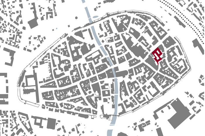 Das neue Gebäudeensemble für Handel, Dienstleistungen und Wohnen liegt in der Altstadt von Amberg, also in einem historischen, städtischen Kontext, der durch Kleinteiligkeit und eine von Satteldächern bestimmte Dachlandschaft geprägt wird. Auf dem Grundstück befinden sich zwei Bestandsgebäude aus unterschiedlichen Bauzeiten. Das kleinere, mit denkmalgeschützter Fassade und historischer Kapelle, stammt aus dem 16. Jahrhundert. Das größere Gebäude wurde in den 1960er Jahren als Kaufhaus errichtet. Ehemals befand sich auf dem Gelände eine Münzprägestätte, auf die der heutige Projektname Bezug nimmt. Ein diagonal über das Grundstück verlaufender Wege teilt das Areal und verbindet die Bahnhofstraße mit der Münzgasse. In Grundstücksmitte weitet er sich zu einem Innenhof, der Raum für kleinere Veranstaltungen bietet.