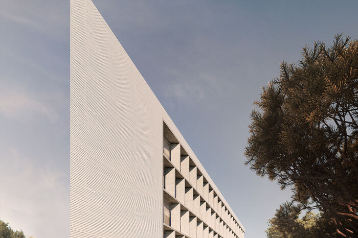 Das international tätige Familienunternehmen Schmitt + Sohn plant in Porto ein neues Verwaltungsgebäude. Das dafür ausgewählte Grundstück liegt am Rand eines Industriegebietes und wird im Nord-Westen durch eine Bahnlinie, im Süd-Osten durch die Produktionshalle des Unternehmens begrenzt. Der Neubau befindet sich aufgrund der ansteigenden Topografie in exponierter Lage und besitzt damit auch eine Fernwirkung.