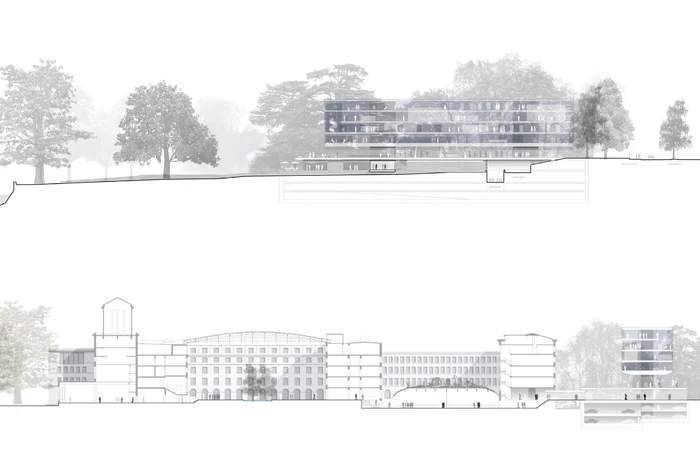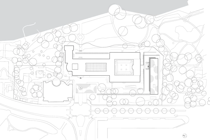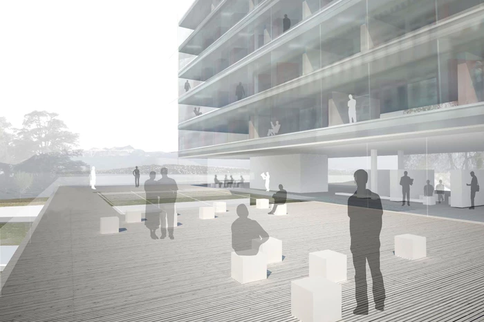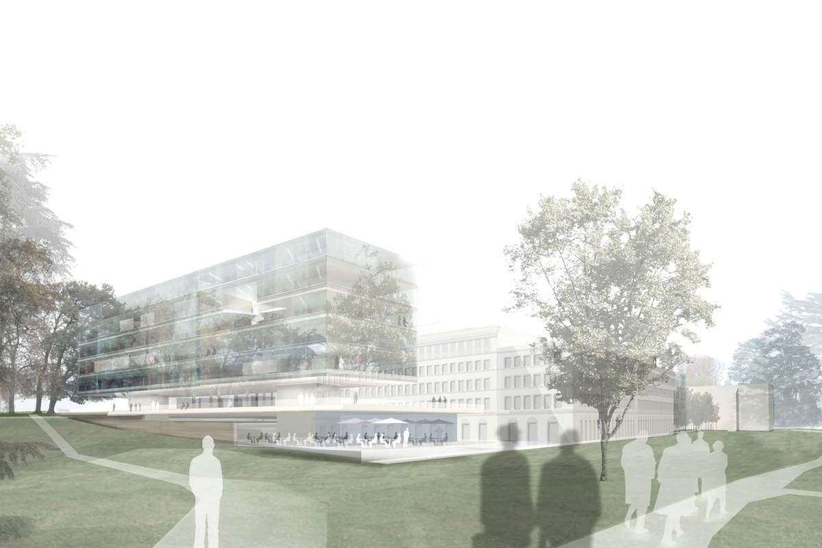 Der Erweiterungsbau des Hauptsitzes der WTO liegt am Ufer des Genfer Sees mit Blickbezug auf den Mont Blanc und inmitten einer beeindruckenden Parklandschaft. Er fügt sich souverän in die schwierige topografische Situation mit massiven Niveauunterschieden ein und generiert eine prägnante Verbindung zwischen Stadt, Park und See. Indem der Neubau weitestgehend auf der Fläche eines ehemaligen Parkplatzes liegt, konnte der alte Baumbestand des Grundstücks erhalten bleiben und es mussten keine zusätzlichen Flächen versiegelt werden.Die vorhandenen Baufluchten werden in Teilen aufgenommen und die Höhenentwicklung an der Gesamtanlage orientiert. In angemessenem Abstand zu den im neoklassizistischen Stil errichteten Gebäuden, schafft der Neubau gleichzeitig einen qualitätsvollen Außenraum. Es entsteht ein ausgewogenes, gut proportioniertes Gesamtbild, das durch den Dialog von Alt und Neu bereichert wird.