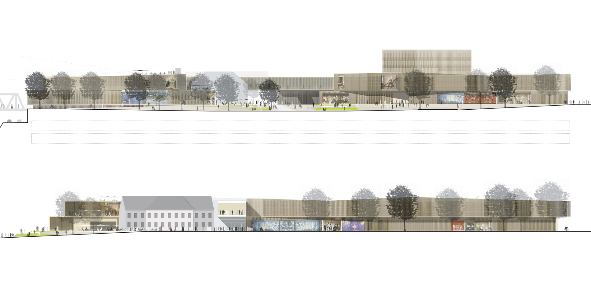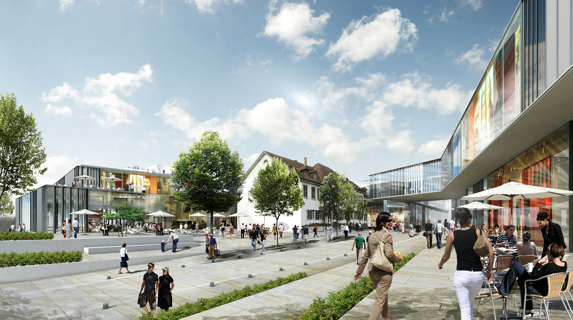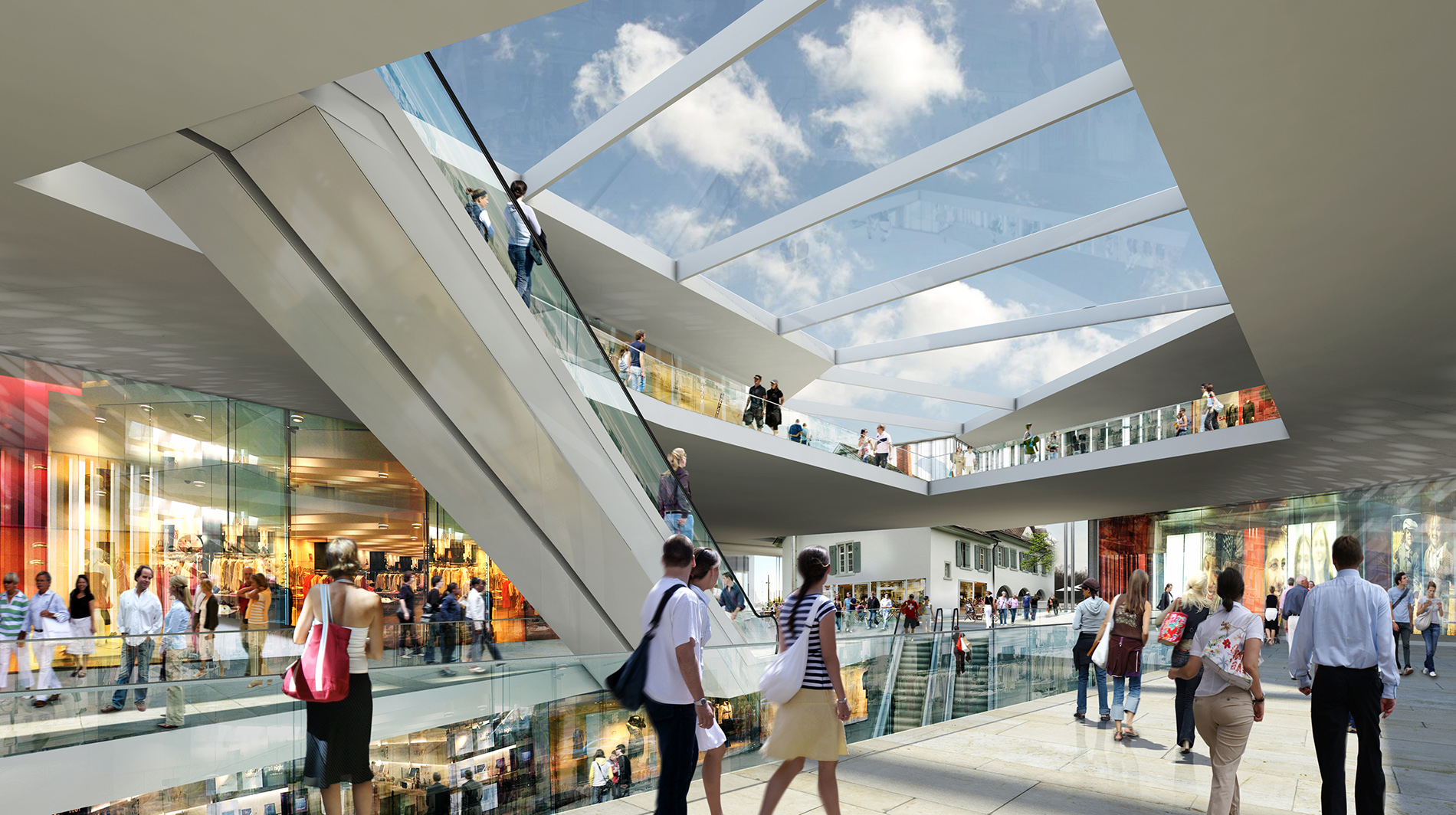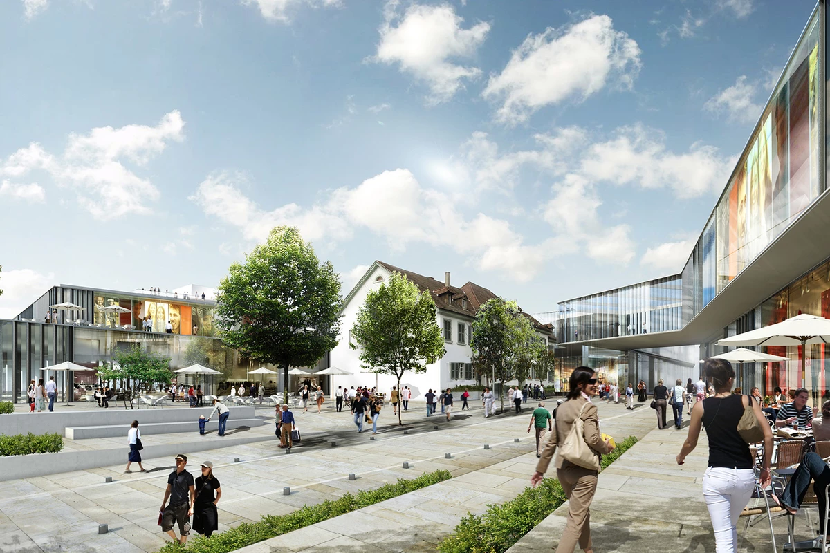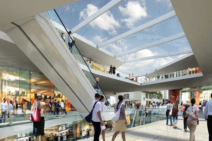 Der Entwurf für das „Westend“ versteht sich in erster Linie als westlicher Schlussstein der innerstädtischen Geschäftsachse entlang der Hauptstraße. Gemeinsam mit dem gegenüberliegenden Gebäudeensemble der Insel entsteht ein städtebaulich signifikanter Hochpunkt der Innenstadt von Weil am Rhein. Die neue und teilweise überdachte Platzfläche zwischen den beiden Grundstücken verbindet die Gebäudeteile des „Westend“ miteinander. Auf dem Platz befindet sich als zentrales bauliches Element das alte badische Zollhaus. Es bleibt freigestellt, sodass ein ausgewogenes Gesamtbild entsteht, das durch das Zusammenspiel von Alt und Neu bereichert wird. Das „Westend“ besteht aus drei Einkaufsetagen. Die großzügige, in West-Ost-Richtung verlaufende Mall schafft auf drei Geschossen Raum für ein entspanntes Einkaufserlebnis. Offene Lufträume mit Rolltreppen und Aufzugsanlagen verbinden die Ebenen miteinander und sorgen neben dem Raumerlebnis auch für eine gute Orientierung. Das alte Zollhaus, als zentrales, räumliches und identitätsstiftendes Element, kann dabei stets aus unterschiedlichsten Perspektiven gesehen und wahrgenommen werden.