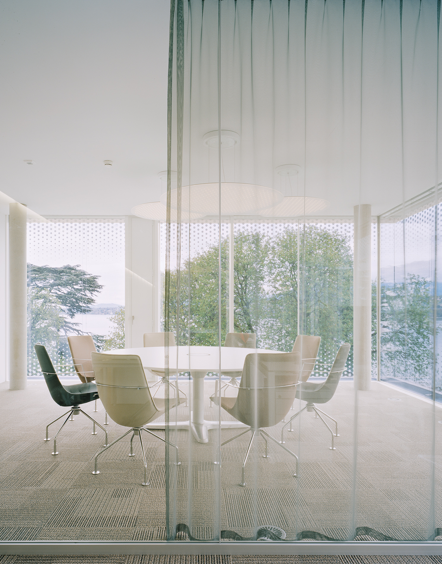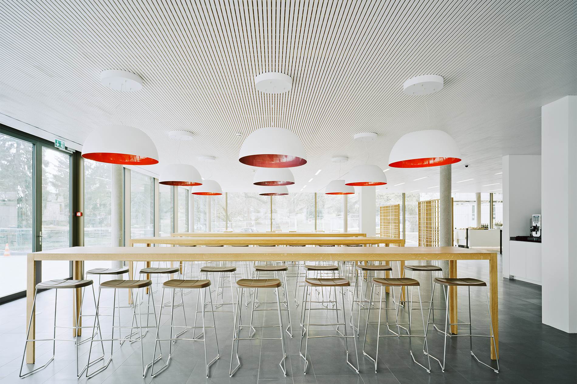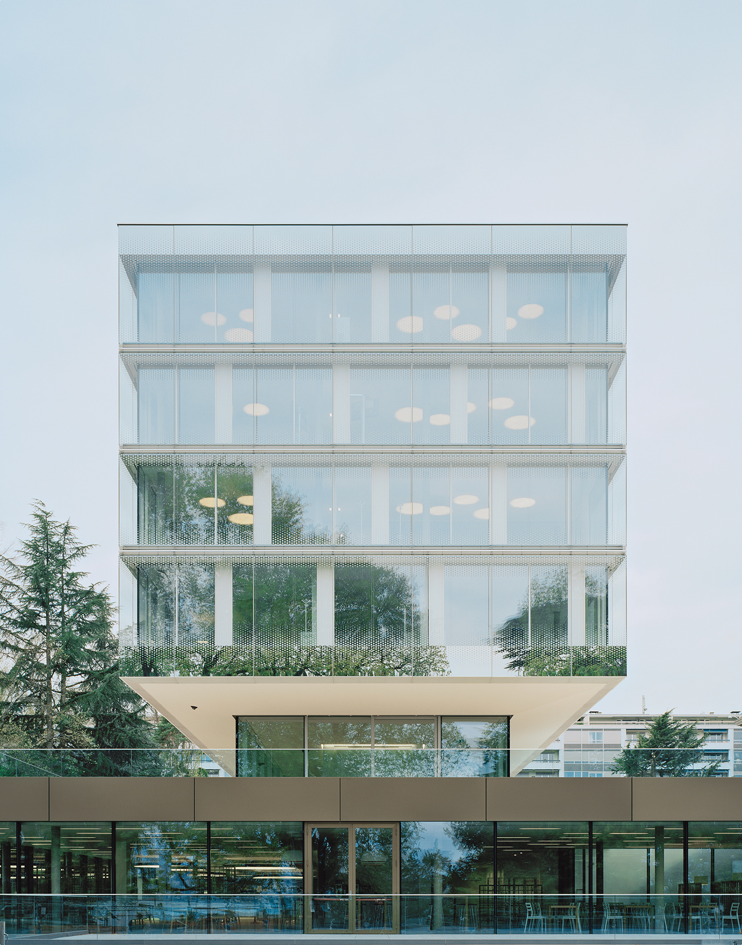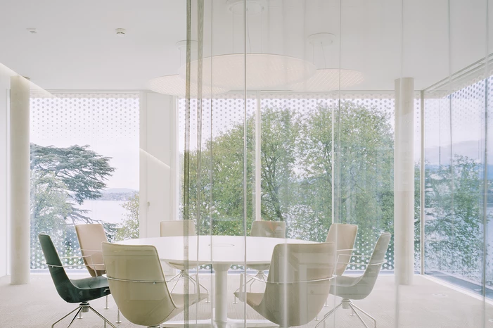Der Erweiterungsbau des Hauptsitzes der WTO liegt am Ufer des Genfer Sees mit Blickbezug auf den Mont Blanc und inmitten einer beeindruckenden Parklandschaft. Er fügt sich souverän in die schwierige topografische Situation mit massiven Niveauunterschieden ein und generiert eine prägnante Verbindung zwischen Stadt, Park und See. Indem der Neubau weitestgehend auf der Fläche eines ehemaligen Parkplatzes liegt, konnte der alte Baumbestand des Grundstücks erhalten bleiben und es mussten keine zusätzlichen Flächen versiegelt werden. Die vorhandenen Baufluchten werden in Teilen aufgenommen und die Höhenentwicklung an der Gesamtanlage orientiert. In angemessenem Abstand zu den im neoklassizistischen Stil errichteten Gebäuden, schafft der Neubau gleichzeitig einen qualitätsvollen Außenraum. Es entsteht ein ausgewogenes, gut proportioniertes Gesamtbild, das durch den Dialog von Alt und Neu bereichert wird.