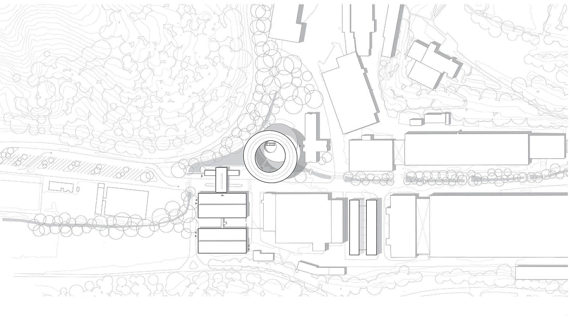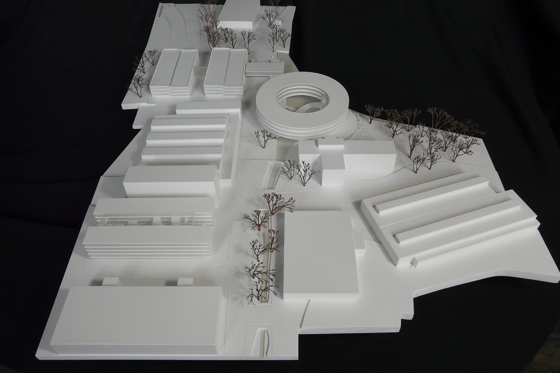 Das neue, südlich gelegene Empfangsgebäude in Verbindung mit den beiden neuen Parkhäusern schafft den repräsentativen Zugang zum „Werkcampus“. Hinter dem Empfangsgebäude befindet sich die neue Hauptverwaltung in Form eines „Schwebenden Rings“. Als zentrales, verbindendes Element ist er von weit her sichtbar und markiert die neue räumliche Mitte des Werkcampus. Im zentral gelegenen Ringgebäude befinden sich die Räumlichkeiten der Geschäftsführung, der Verwaltung und der Logistik sowie die repräsentativen Bereiche. Der zweite Baukörper, der sogenannte „Forschungsbau“, reiht sich thematisch in die Produktions- und Entwicklungsschiene entlang der Sulzbachstraße ein.