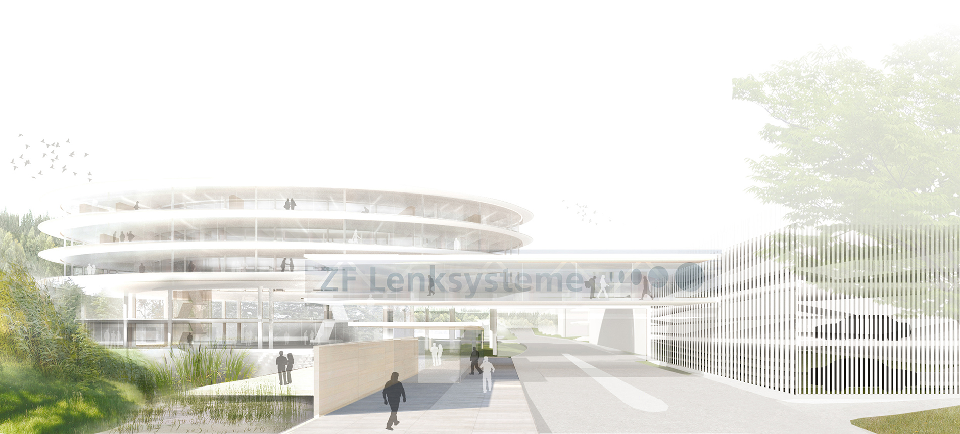 Die zu planenden Neubauten befinden sich im Spannungsfeld zwischen Produktionshallen, Forschungseinrichtungen, Verwaltungsgebäuden und der freien Landschaft. Sie sind weithin sichtbar und daher gestaltprägend für das Erscheinungsbild der ZF Lenksysteme.